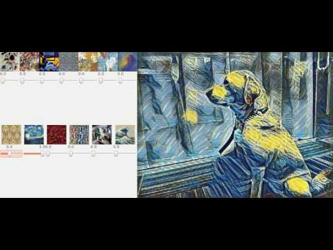 In our recent paper titled “A Learned Representation for Artistic Style”, we introduce a simple method to allow a single deep convolutional style transfer network to learn multiple styles at the same time. The network, having learned multiple styles, is able to do style interpolation, where the pastiche varies smoothly from one style to another. Our method enables style interpolation in real-time as well, allowing this to be applied not only to static images, but also videos.